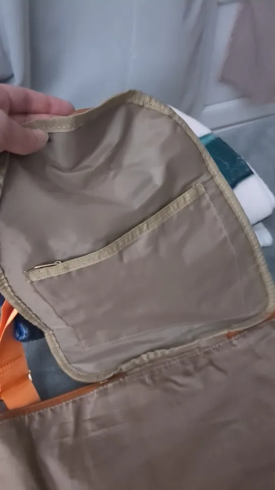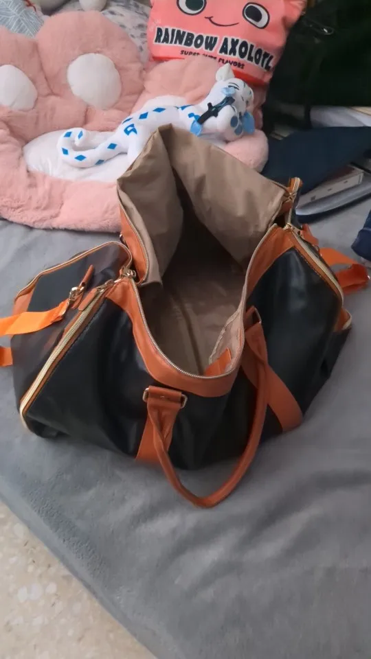 The famous bag that we see everywhere on social media, at a more affordable price... Well, it looks like it's made of faux leather, we'll see how it holds up. But it is indeed foldable with all the compartments, which saves you from having to carry a big suitcase. Delivered with its strap!